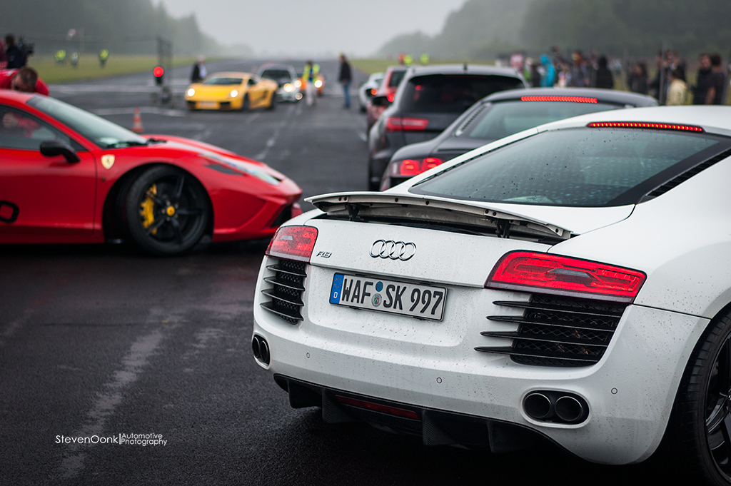 Les propriétaires ont surtout eu la rare occasion de s'adonner à une course de grag digne de ce nom. Et comme souvent, un concours de bruits a suivi. Pour les courses de drag, les voitures étaient séparées selon leur catégorie, comme il se doit. Malheureusement, la mauvaise météo s'en est mêlé. Plus tard le soleil est revenu et l'allure ne faisait qu'augmenter. Certains se sont même essayé à des burns, revs battles, et autres donuts. Le SuperCars Event 2014 avait beau être la première édition, elle ne sera pas la dernière. L'organisation était excellente et l'ambiance était purement excellente. Voici une petite sélection de photos que l'on partage avec vous! Photos de Steven Oonk