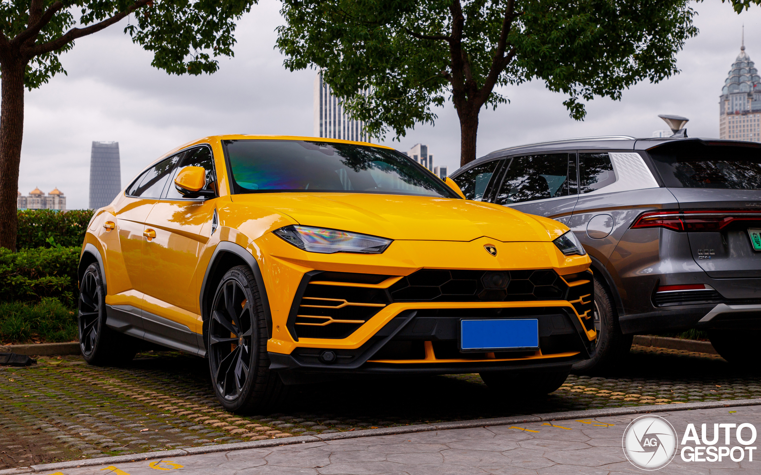 Fantastic Urus with part of the Shanghai skyline in the back.
