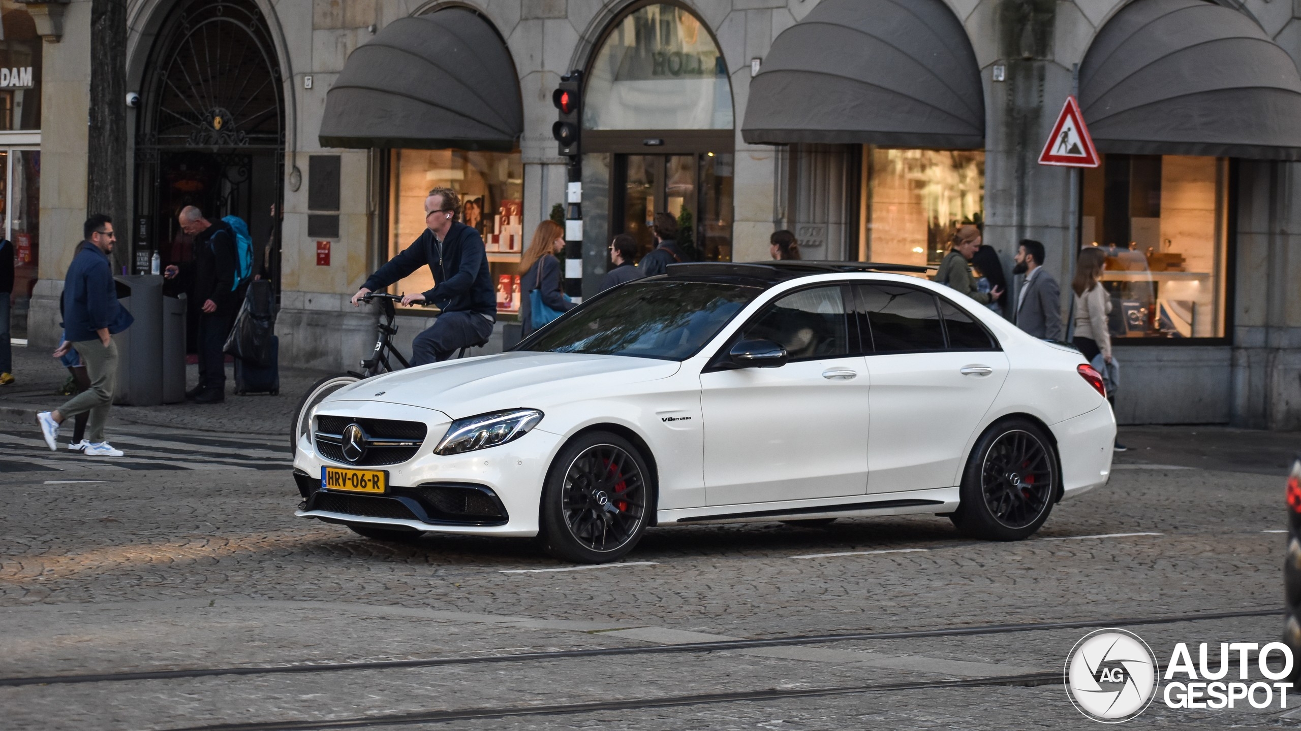 Nog zo'n spotje op de Dam maar. Witte C63S, vrij verse import vanuit Duitsland. Altijd druk hier maar het geeft een leuk sfeertje.